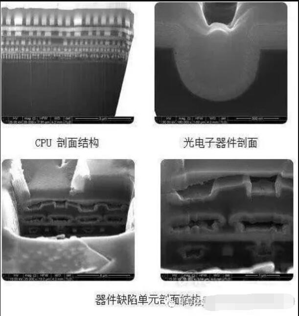 1. 聚焦離子束(FIB),由離子源,離子束聚焦和樣品臺組成。利用電鏡將離子聚焦成微波尺寸的切割器。聚焦離子束的細(xì)微精準(zhǔn)切割,結(jié)合掃描電鏡的高分辨率成像,可以很好地解決剖面問題,定位精度可以達(dá)到0.1um以下,同時剖面過程過集成電路愛到的應(yīng)力很小,完整地保存集成電路。