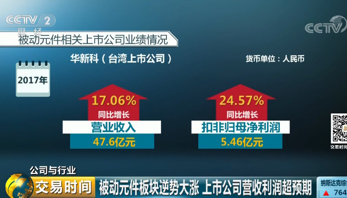 臺(tái)灣華新科2017年?duì)I業(yè)收入47.6億元,同比增長(zhǎng)17.06%;扣非歸母凈利潤(rùn)5.46億元,同比增長(zhǎng)24.57%。