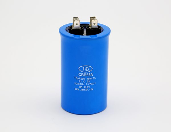 CBB65為無感結(jié)構(gòu),用金屬化聚丙烯薄膜作用電介質(zhì)/電極卷繞而成,環(huán)氧樹脂真空浸漬,鋁外殼封裝,內(nèi)裝有防爆安全裝置。
