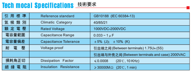 高頻損耗小,適用于較大電流;絕緣電阻高,自愈性好,壽命長;